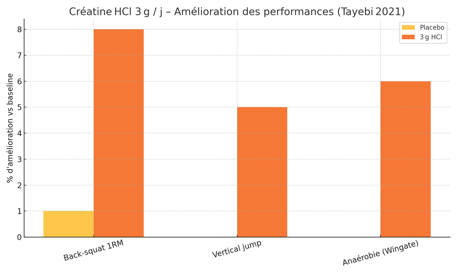 Dans une étude sur des soldats, 2 g de créatine HCl / jour = 1 gummie